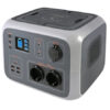 12-volt socket, 4 USB-sockets, micro-USB, 2 230-volt sockets, snelle belasting, LCD-display , afmetingen w 26 x H 19,6 x d 20 cm, gewicht 6,5 kg.